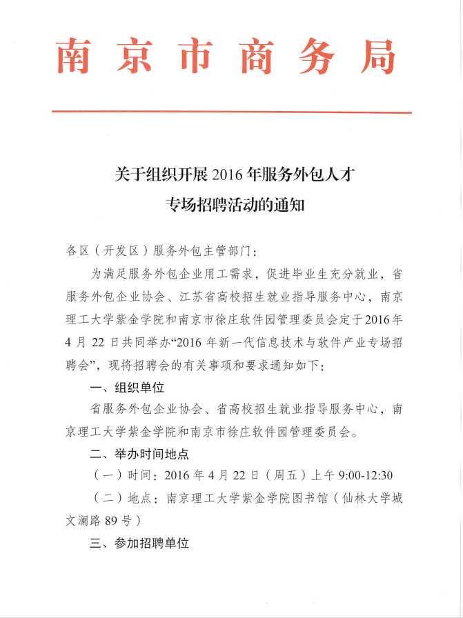 關(guān)于組織開展2016年服務(wù)外包人才專場招聘活動(dòng)的通知